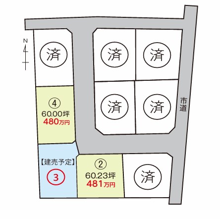(建築条件付土地) 区画4番 残り区画 2区画 販売価格帯 480万から、481万円 土地面積帯 60.00坪から、60.23坪 気になる事などありましたら お気軽にお問い合わせください。
